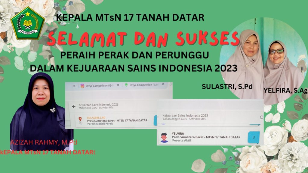Selamat dan sukses kepada Guru berprestasi Peraih Perak dan Perunggu dala kejuaraan Sains Indonesia Tahun 2023 Kamis, 14 Desember 2023 | Oleh Admin MTsN 17 Tanah Datar 1,893 total views