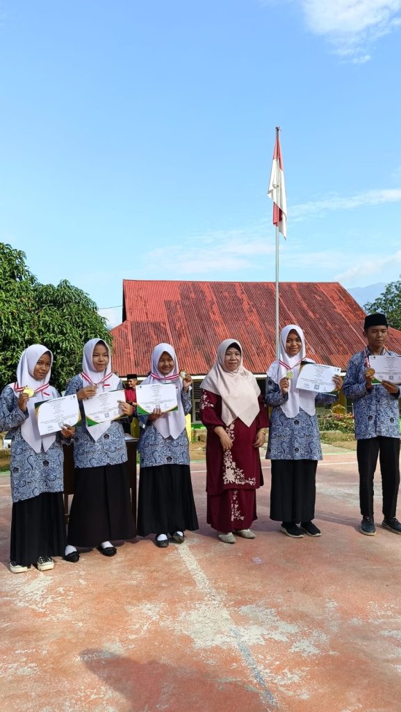 Kepala MTsN 17 Tanah Datar Serahkan Medali untuk Siswa Berprestasi
